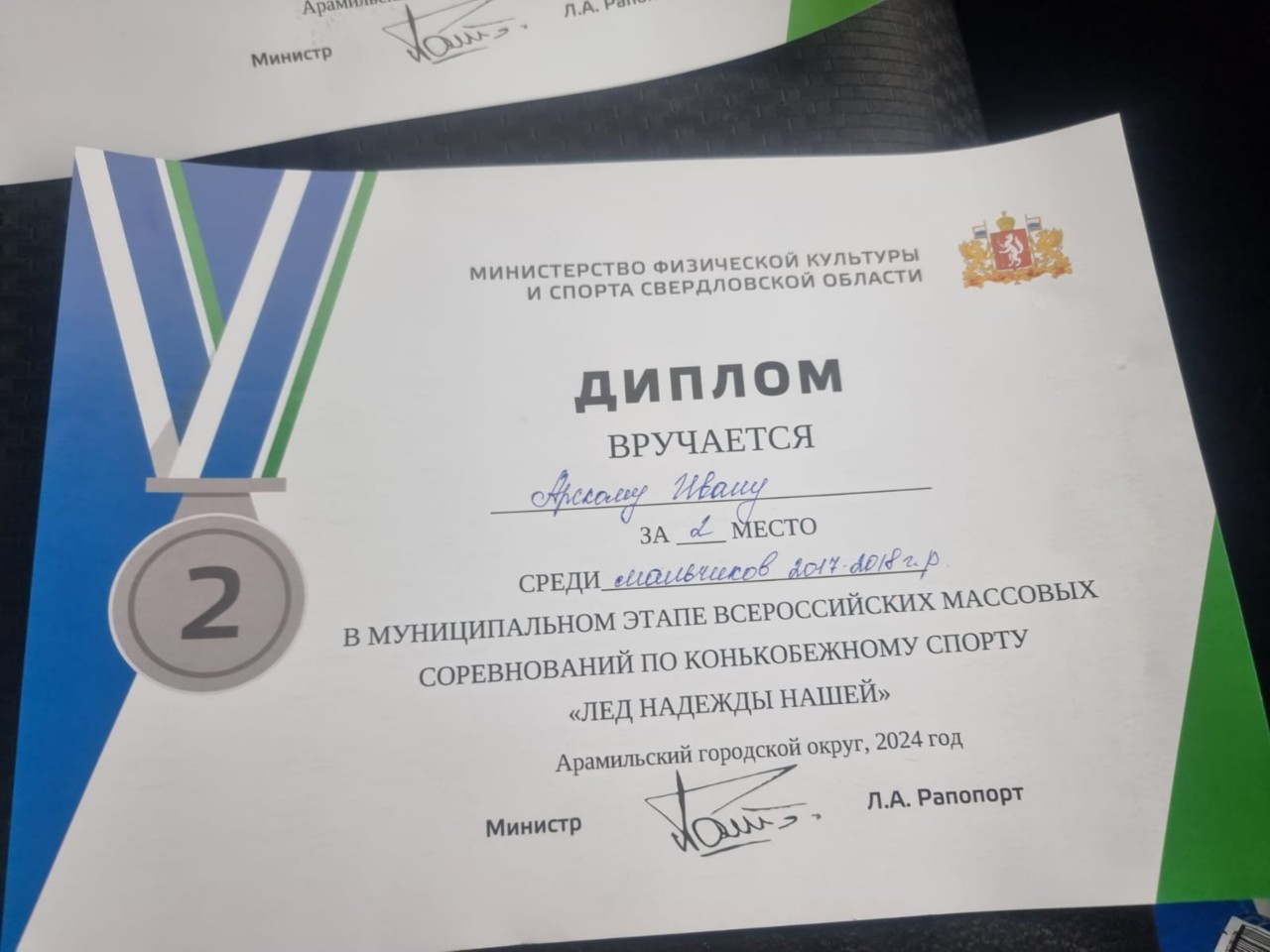 В субботу в арамильском городском округе проходило соревнование по конькобежному спорту, среди ребят 2017 - 2018 года рождения. Поздравляем нашего воспитанника Арских Ивана со вторым место среди мальчиков.