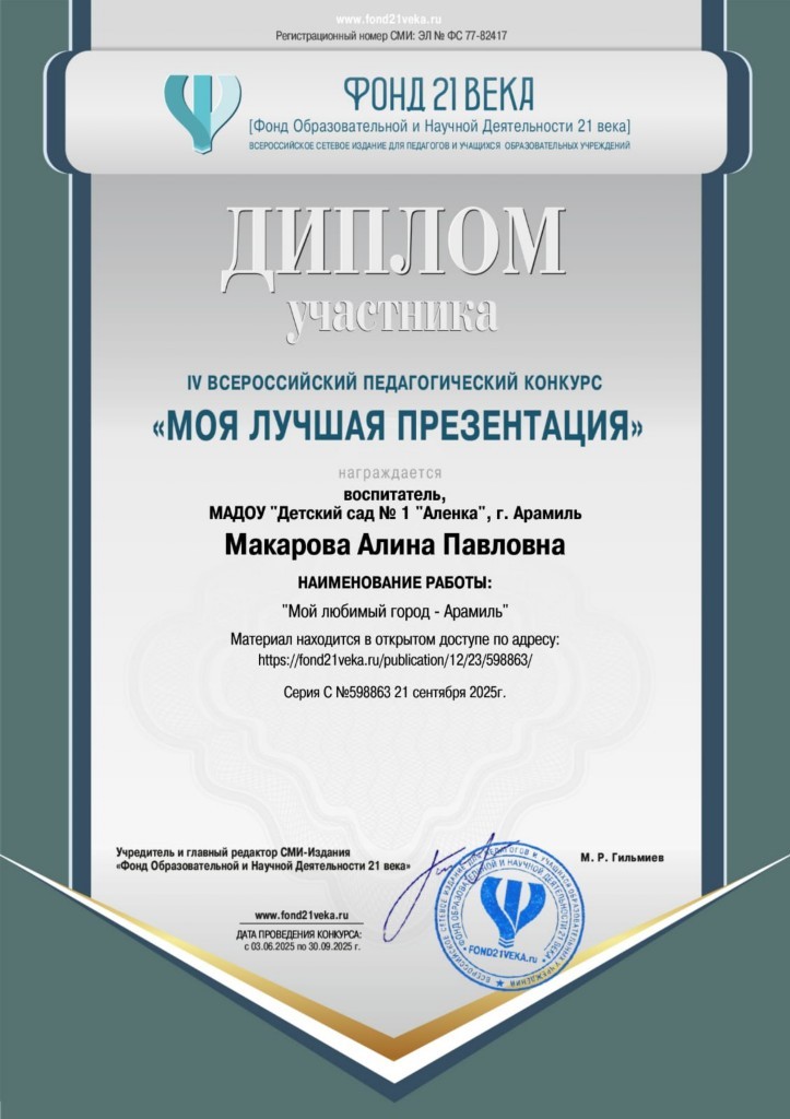 Заучастие в IV Всероссийском педагогическом конкурсе