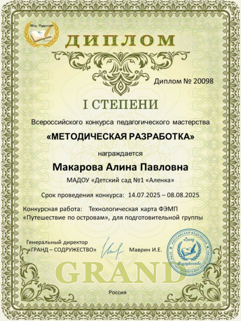 За первое место во Всероссийском конкурсе педагогического мастерства